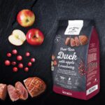 ΣΥΝΘΕΣΗ: Φρέσκια Πάπια 40%, Αποξηραμένη Πάπια 25%, Άμυλο Πατάτας, Γλυκοπατάτα, Λίπος Πάπιας 7%, Άμυλο Μπιζελιού, Ολόκληρος Λιναρόσπορος, Αποξηραμένα Φύκια, Υδρολυμένη Πρωτεΐνη Συκωτιού 1%, Χλωριούχο Νάτριο, Εκχύλισμα Μαγιάς, Αποξηραμένο Μήλο (ισοδύναμο με 5% φρέσκο μήλο), Αποξηραμένο Κράνμπερι (ισοδύναμο με 5% φρέσκο κράνμπερι), Υδροχλωρική Γλυκοζαμίνη, Θειική Χονδροϊτίνη.