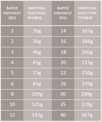 Προτείνουμε να ταΐζετε τα κουτάβια από 6 εβδομάδων και μετά 3 φορές την ημέρα μέχρι την ηλικία των 6 μηνών, και στη συνέχεια η συχνότητα να μειωθεί σε δύο φορές την ημέρα.